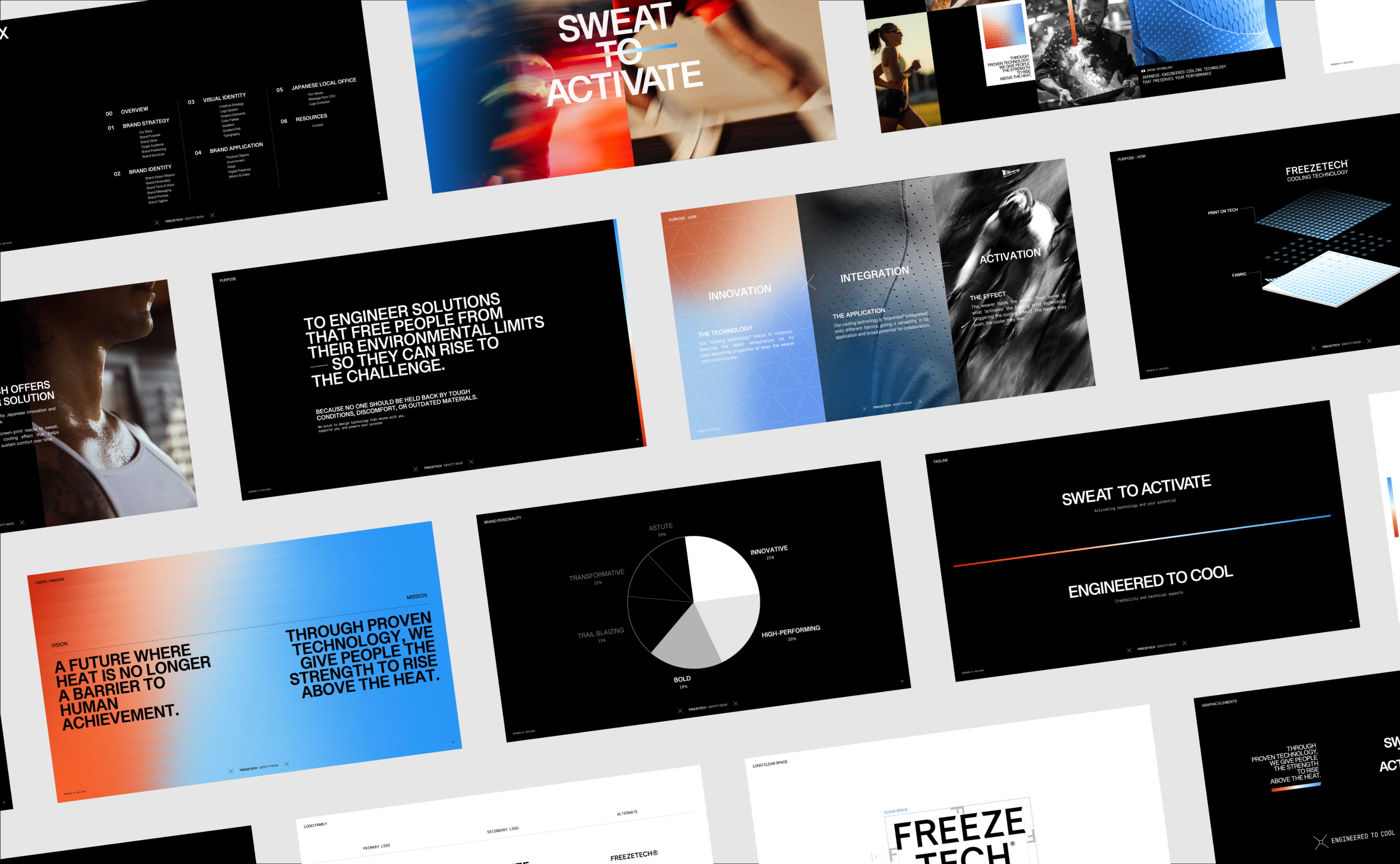 The core of FREEZETECH is not about cooling the body, but about unlocking human potential. Centering around the vision of “A FUTURE WHERE HEAT IS NO LONGER A BARRIER TO HUMAN ACHIEVEMENT,” we rebuilt the brand from its core. Cooling technology was reframed not as an end goal, but as what empowers people to push further and perform beyond environmental limits.